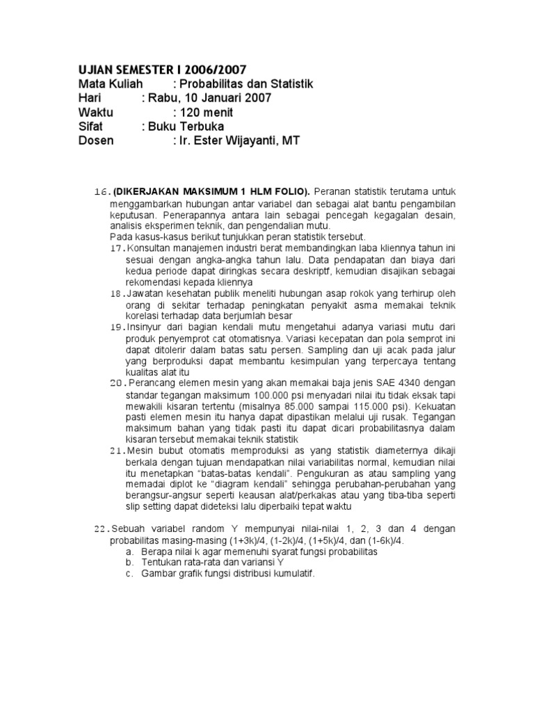 Soal ujian utama pengantar ekonomi 2 gunadarma helmi kediris. Contoh soal statistika kuliah semester 2. Sebuah badan sertifikasi kelompok pengguna komputer nasional telah melakukan uji kompetensi management lembaga pendidikan komputer di. Pelajaran ini biasanya terdapat pada sekolah dasar islam maupun negeri yang dikomandoi oleh guru agama. Vidi al imami nim :